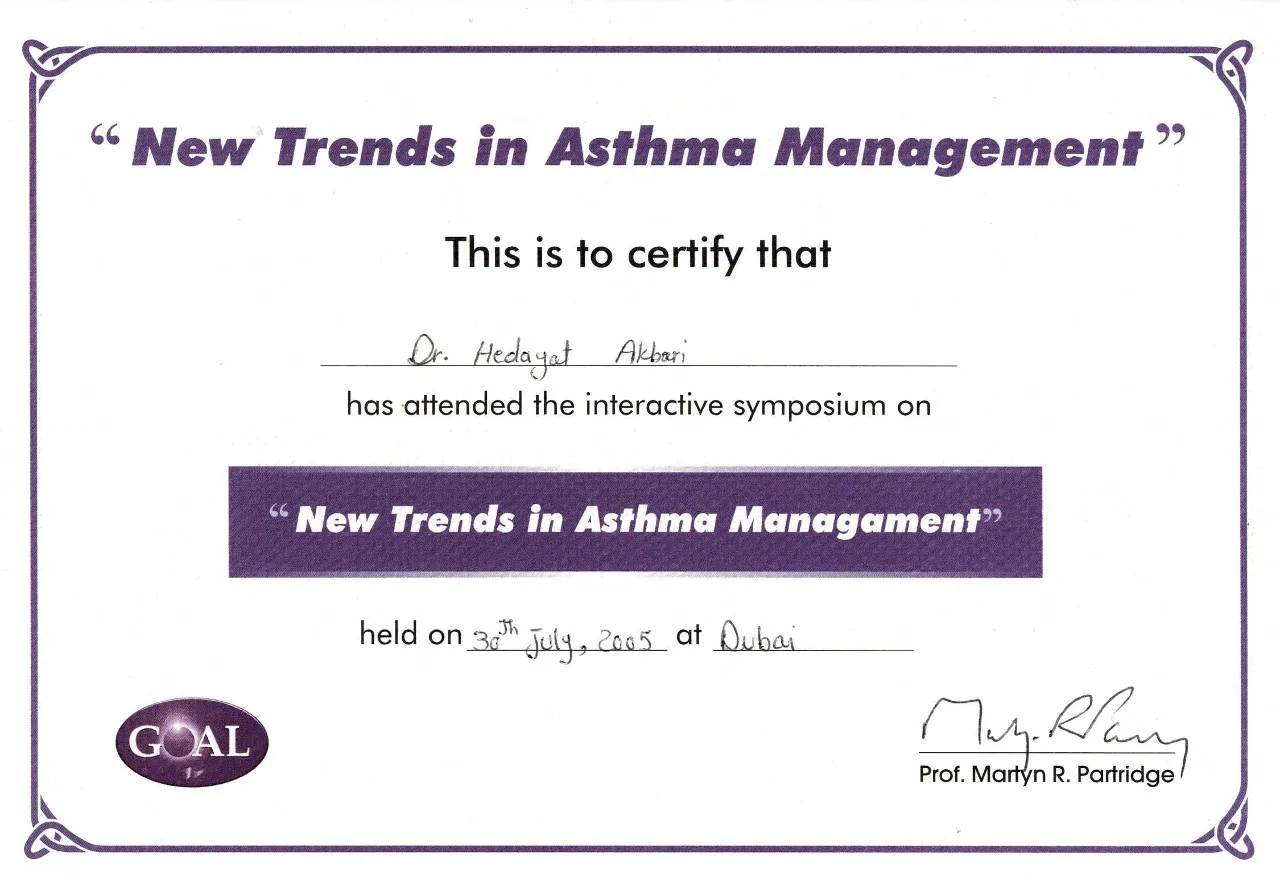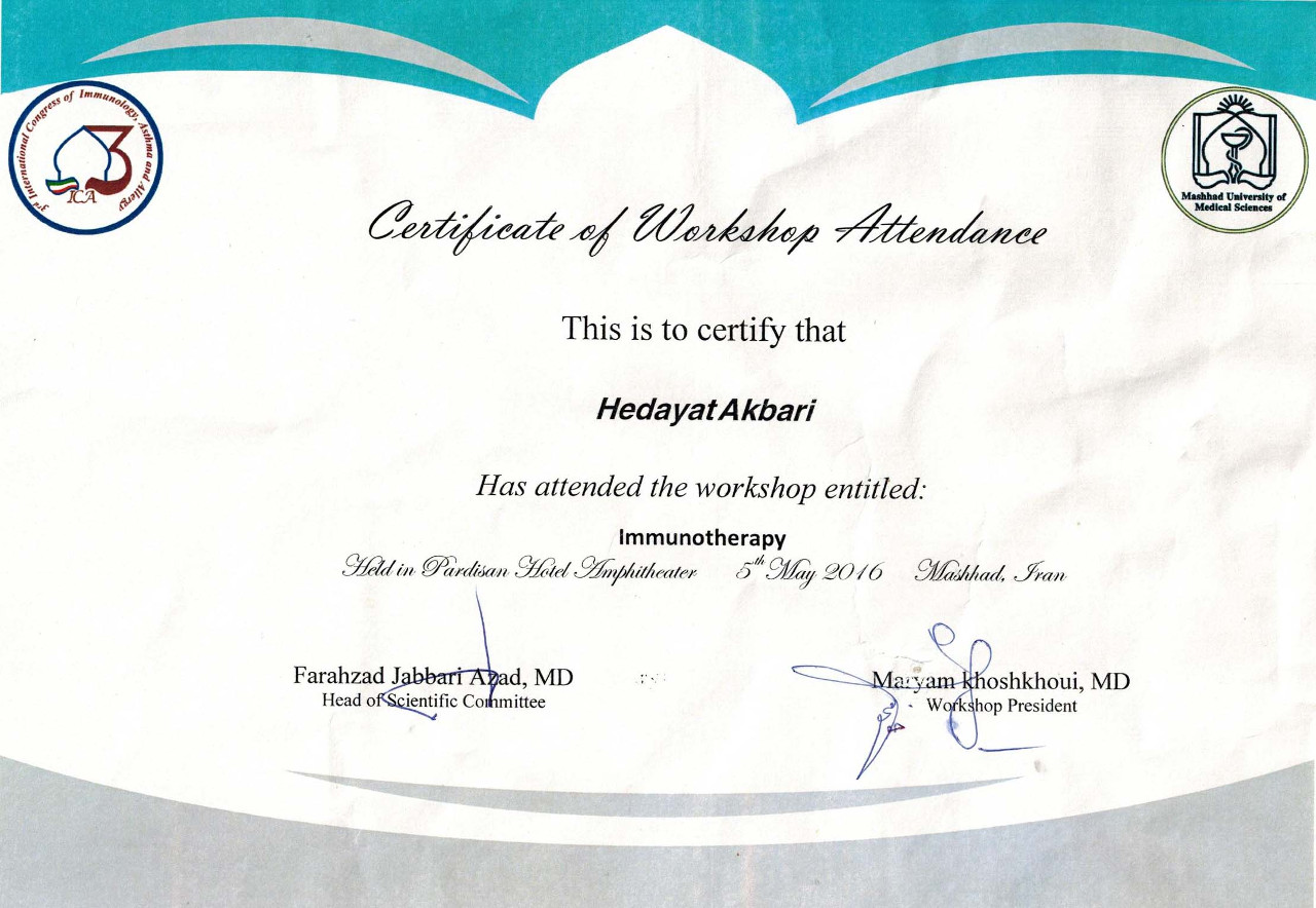 – Shiraz Medical University, Allergy and Clinical Immunology Subspeciality,1994-1996